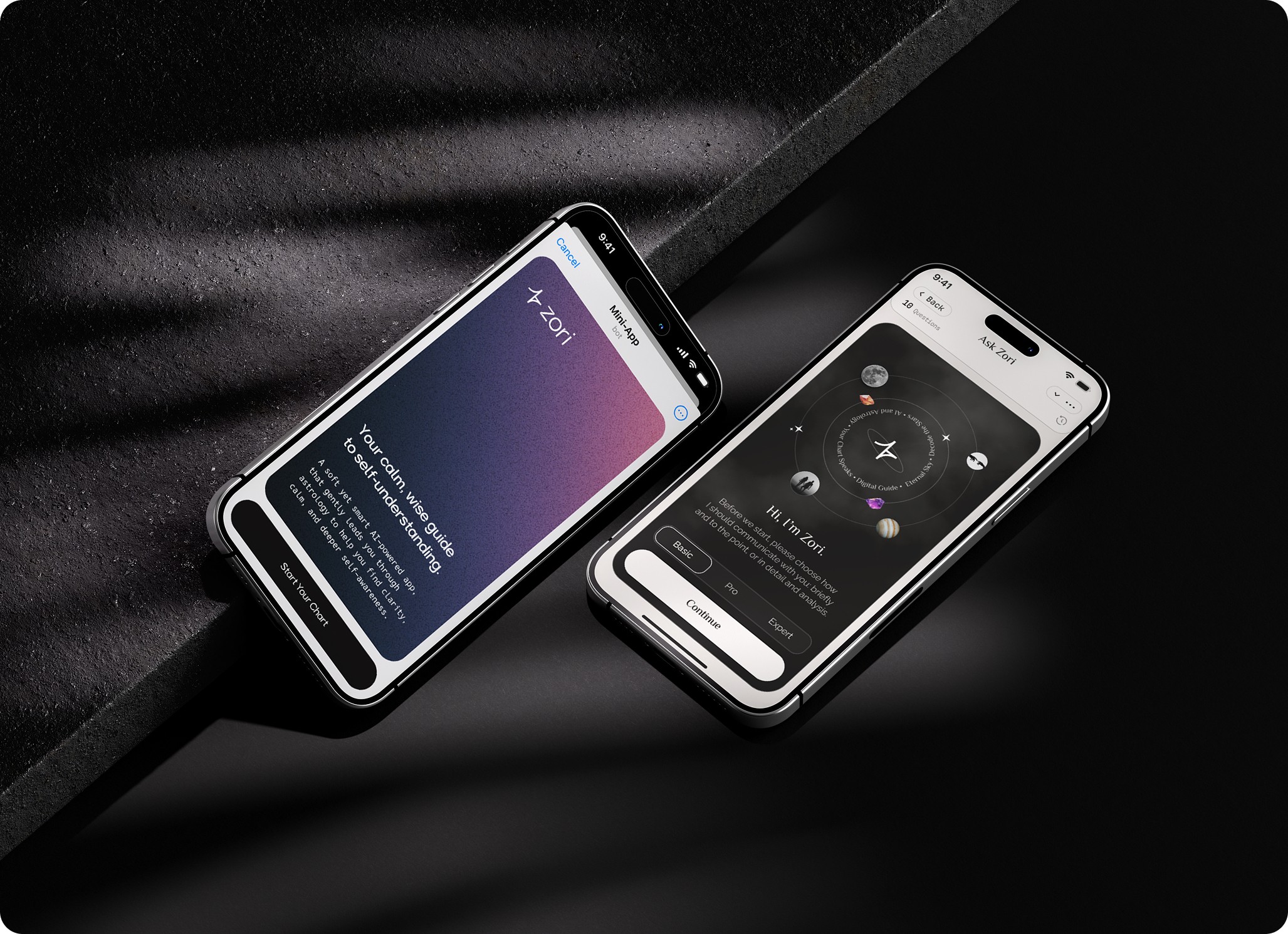 AI-powered astrology system with real dialogue and personalization. Brand identity that reflects the product’s personality. Clean, intuitive interface focused on daily usage.